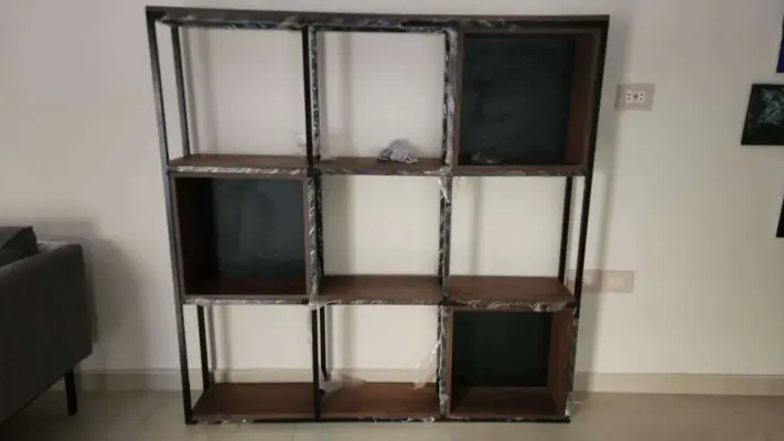 “Modern Bookcase unit in its latest form. The unit features harmonious interior divisions for books, decorations and overall storage.