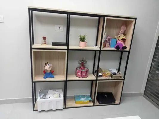 مكتبة بأحدث أشكالها. تتميز الوحدة بتقسيمات داخلية متناغمة للكتب والديكورات والتخزين بشكل عام