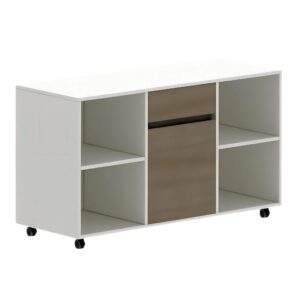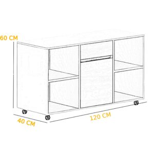 تتميز وحدة التخزين بأرفف كبيرة توفر مساحة وفيرة لتنظيم الكتب، الملفات، الأوراق، وأي أغراض أخرى بشكل منظم.”