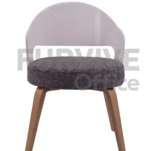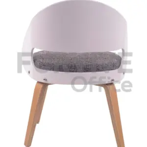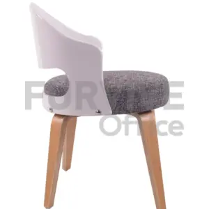 “An open back wooden chair designed with modern lines. The chair is made of beech wood with white color and the base is made of high-quality fabric upholstery in grey color with high-density foam filling for the greatest comfort. Fixed wooden legs for a solid base.