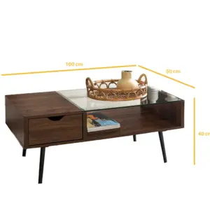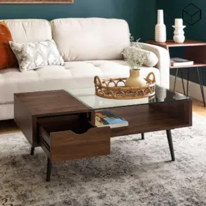 “Get a coffee table with modern designs that suit different tastes and decors, providing a comfortable surface for placing drinks, books, and small decorations, making it an ideal addition to the living room.