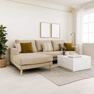 “Whether you want to spend a quiet time relaxing, or receive your guests in a modern style, the corner sofa is the perfect choice to add a touch of luxury to your home, with luxurious upholstery and a comfortable design that suits all your needs.