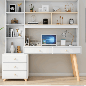 An elegant desk that combines practical and aesthetic design, made of premium materials to ensure durability and longevity.