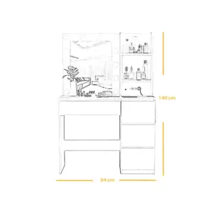 ارتق بأناقة غرفتك مع تسريحتنا الفاخرة. تصميم متقن يوفر لك مساحة منظمة لمستحضرات التجميل والإكسسوارات، مما يضفي لمسة من الجمال والراحة على روتينك اليومي”
