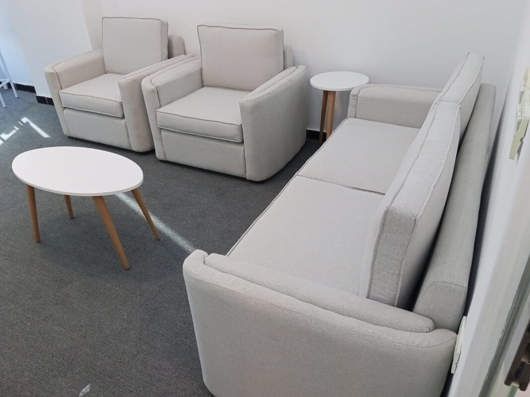 تتميز مجموعة غرفة المعيشة هذه بمظهر عصري وبسيط. حيث تجذب شعور بالنظام وجعل المساحة تبدو مشرقة وجيدة التهوية.”