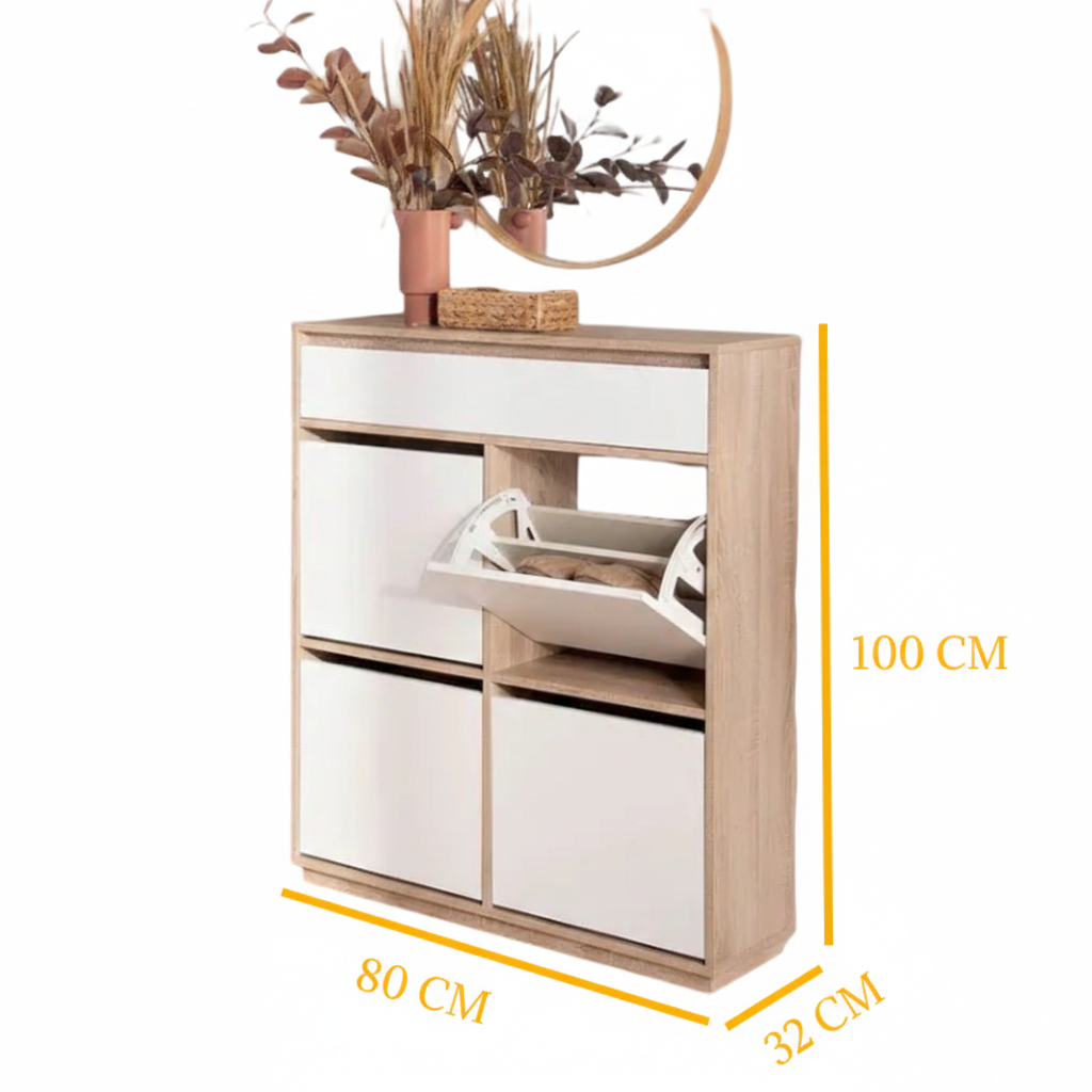“This elegant shoe rack is the perfect solution to organize your shoes in style and order. With a practical design that ensures space saving and easy access, you can add a luxurious touch to the entrance of your home.