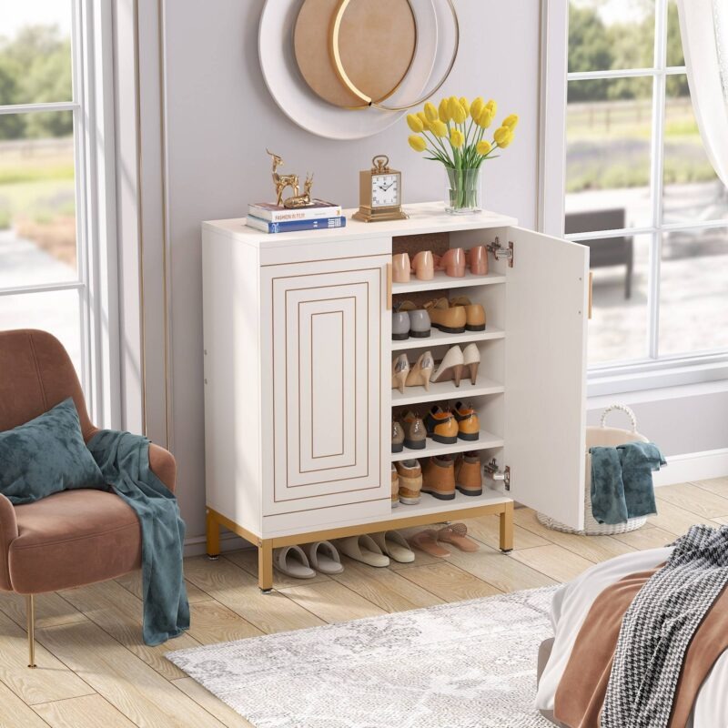 “This elegant shoe rack is the perfect solution to organize your shoes in style and order. With a practical design that ensures space saving and easy access, you can add a luxurious touch to the entrance of your home.