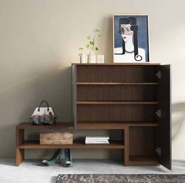 “This elegant shoe rack is the perfect solution to organize your shoes in style and order. With a practical design that ensures space saving and easy access, you can add a luxurious touch to the entrance of your home.