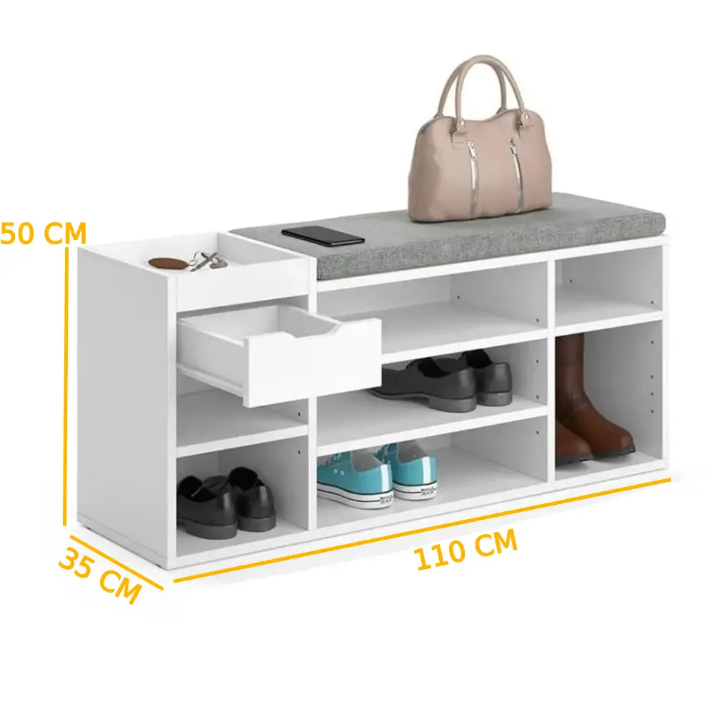 “This elegant shoe rack is the perfect solution to organize your shoes in style and order. With a practical design that ensures space saving and easy access, you can add a luxurious touch to the entrance of your home.