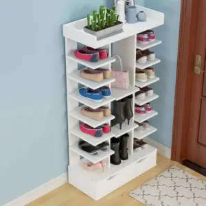 “This elegant shoe rack is the perfect solution to organize your shoes in style and order. With a practical design that ensures space saving and easy access, you can add a luxurious touch to the entrance of your home.