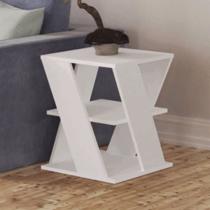 “A functional and decorative side table for a living area. This side table would make an excellent accent piece in the corner of the room or by the sofa in any modern or vintage decor.