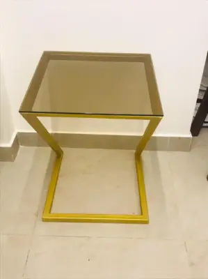 Steel Side Table Gold With Glass Top ترابيزة جانبية ذهبية