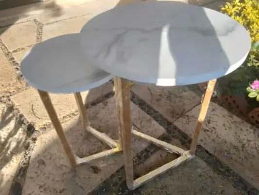 Steel Side Table Set White and Gold طاولة جانبية ذهبية قطعتين