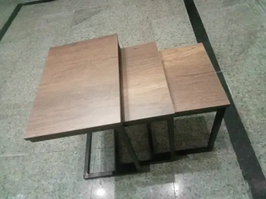 Steel Side Table Set With Wooden Top طقم ترابيزات جانبية ثلاثي