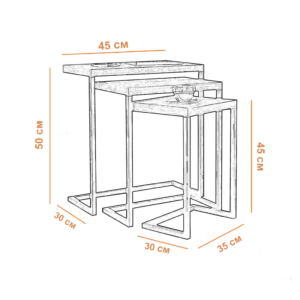 | Dimensions | Large Table Dimensions: Width 45 CM, Depth 30 CM, Height 55 CM, Medium Table Dimensions: Width 40 CM, Depth 30 CM, Height 50 CM, Small Table Dimensions: Width 35 CM, Depth 30 CM, Height 44 CM |