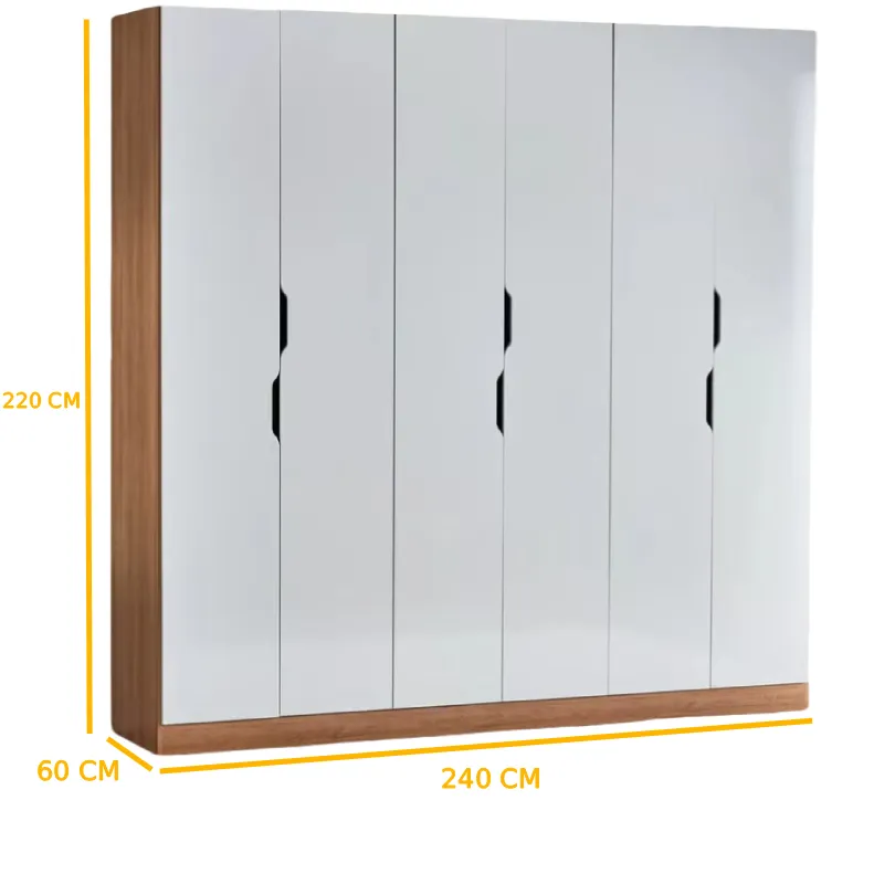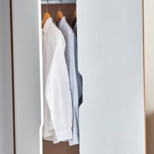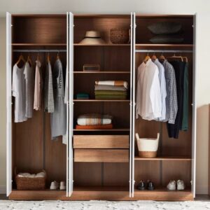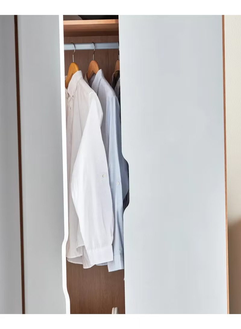 “A distinctive wardrobe with a modern design that combines elegance and practicality, providing ample storage space for organizing clothes or personal items, with elegant details that add a sophisticated touch to any room and make organization easier and more beautiful.