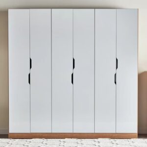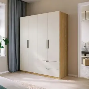 “A distinctive wardrobe with a modern design that combines elegance and practicality, providing ample storage space for organizing clothes or personal items, with elegant details that add a sophisticated touch to any room and make organization easier and more beautiful.