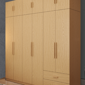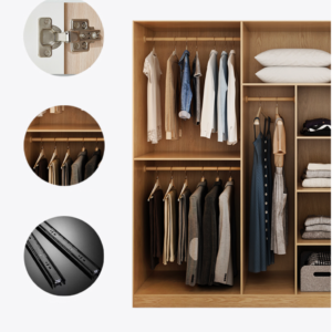 “A distinctive wardrobe with a modern design that combines elegance and practicality, providing ample storage space for organizing clothes or personal items, with elegant details that add a sophisticated touch to any room and make organization easier and more beautiful.