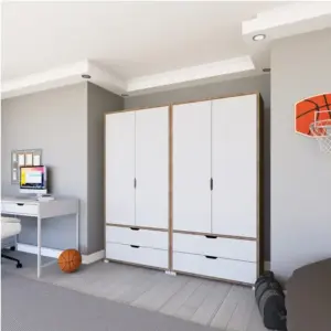 “A distinctive wardrobe with a modern design that combines elegance and practicality, providing ample storage space for organizing clothes or personal items, with elegant details that add a sophisticated touch to any room and make organization easier and more beautiful.