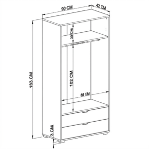 | Dimensions | Width 90 CM, Depth 42 CM, Height 183 CM |