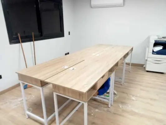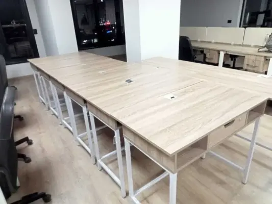 “A modern Workstation Made of MDF Wood of High Quality With a design that you can share with 4 people fits perfectly with all corners of your office. Design cares about existing spaces in existing offices while designing products.
