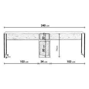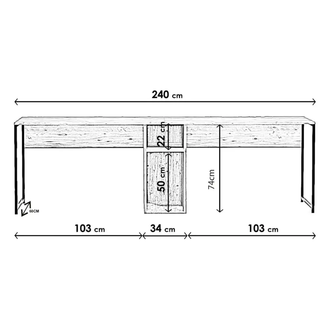 | Size | Width 240 CM, Depth 60 CM, Height 74 CM |